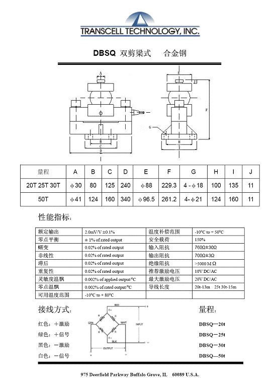 Transcell DBSQ 橋式稱(chēng)重傳感器(load ce