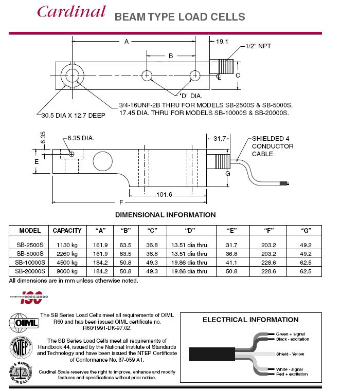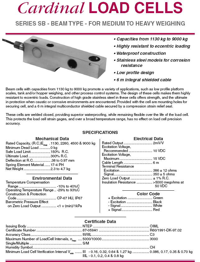 Cardinal SB 稱重傳感器(load cells) 所有型號: