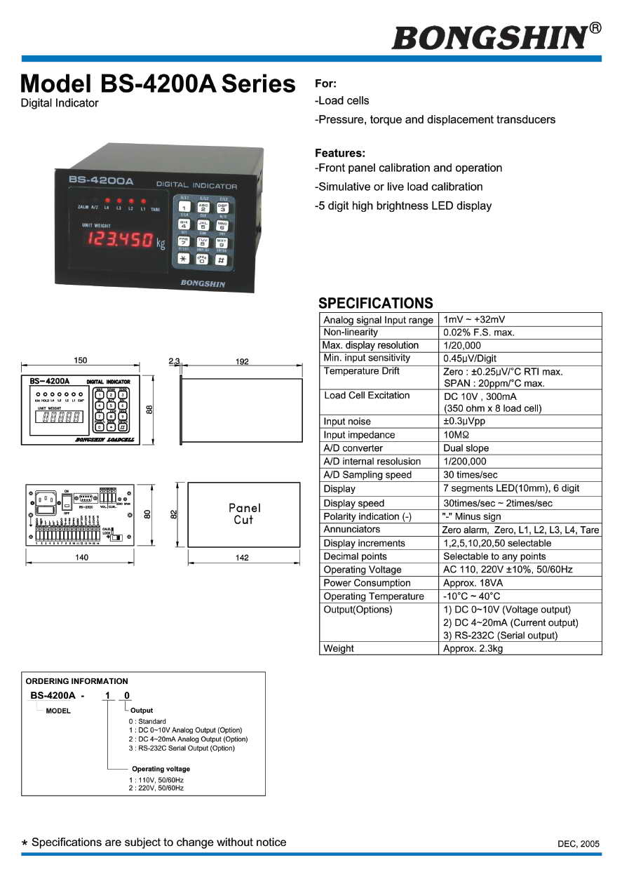 | 產(chǎn)品名稱:BS-4200A 顯示儀表(digital indicator) |