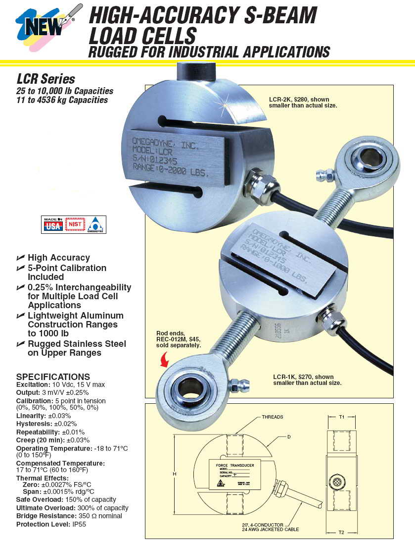 | 產(chǎn)品名稱:Omega LCR S型稱重傳感器(load cells) |