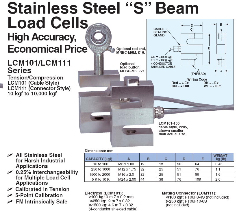 Omega LCM101 S型稱重傳感器(load cells)