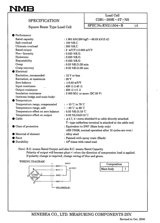 | 產(chǎn)品名稱:C3B1 NMB稱重傳感器(load cells) |