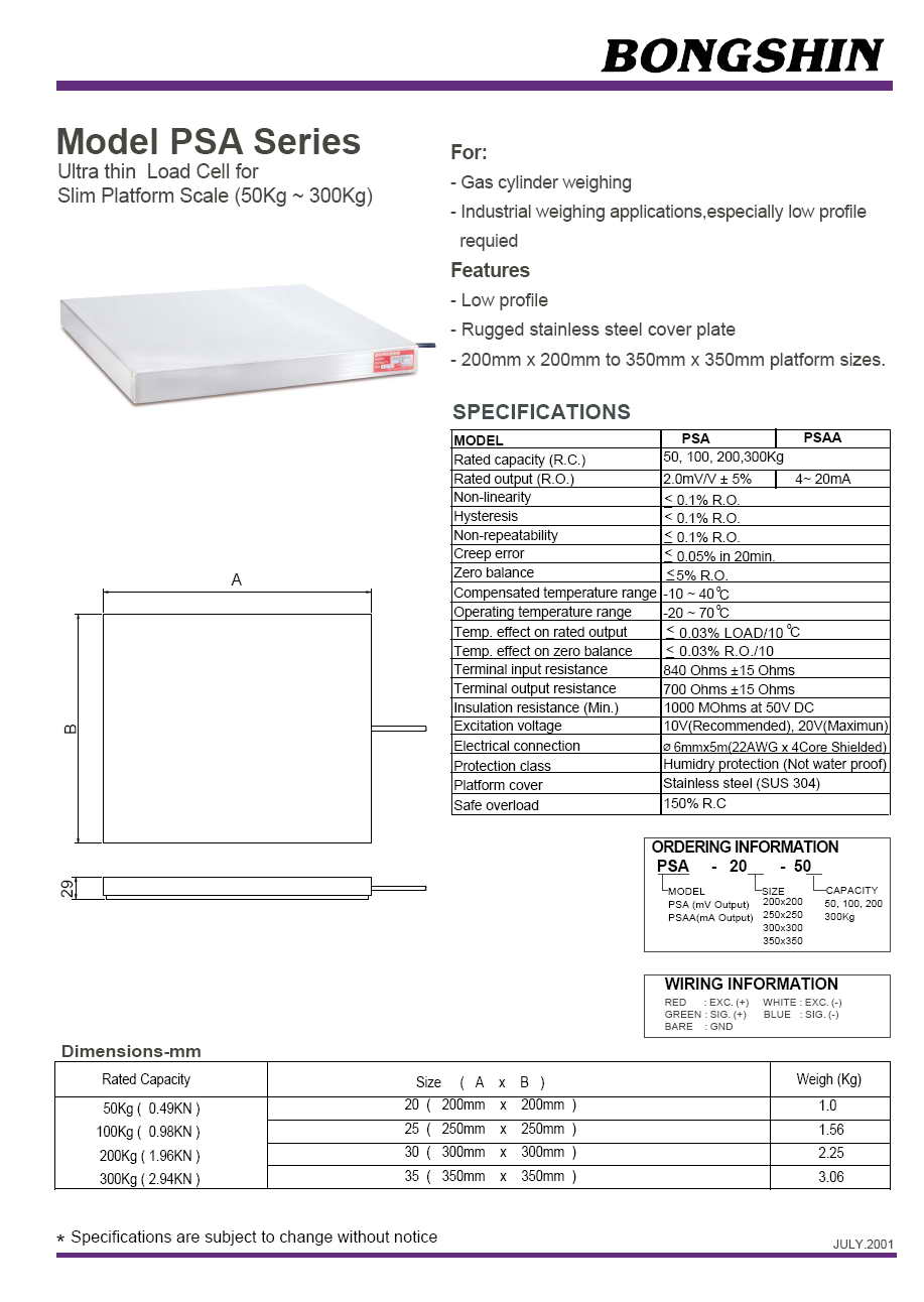 PSA 稱(chēng)重傳感器(load cell)