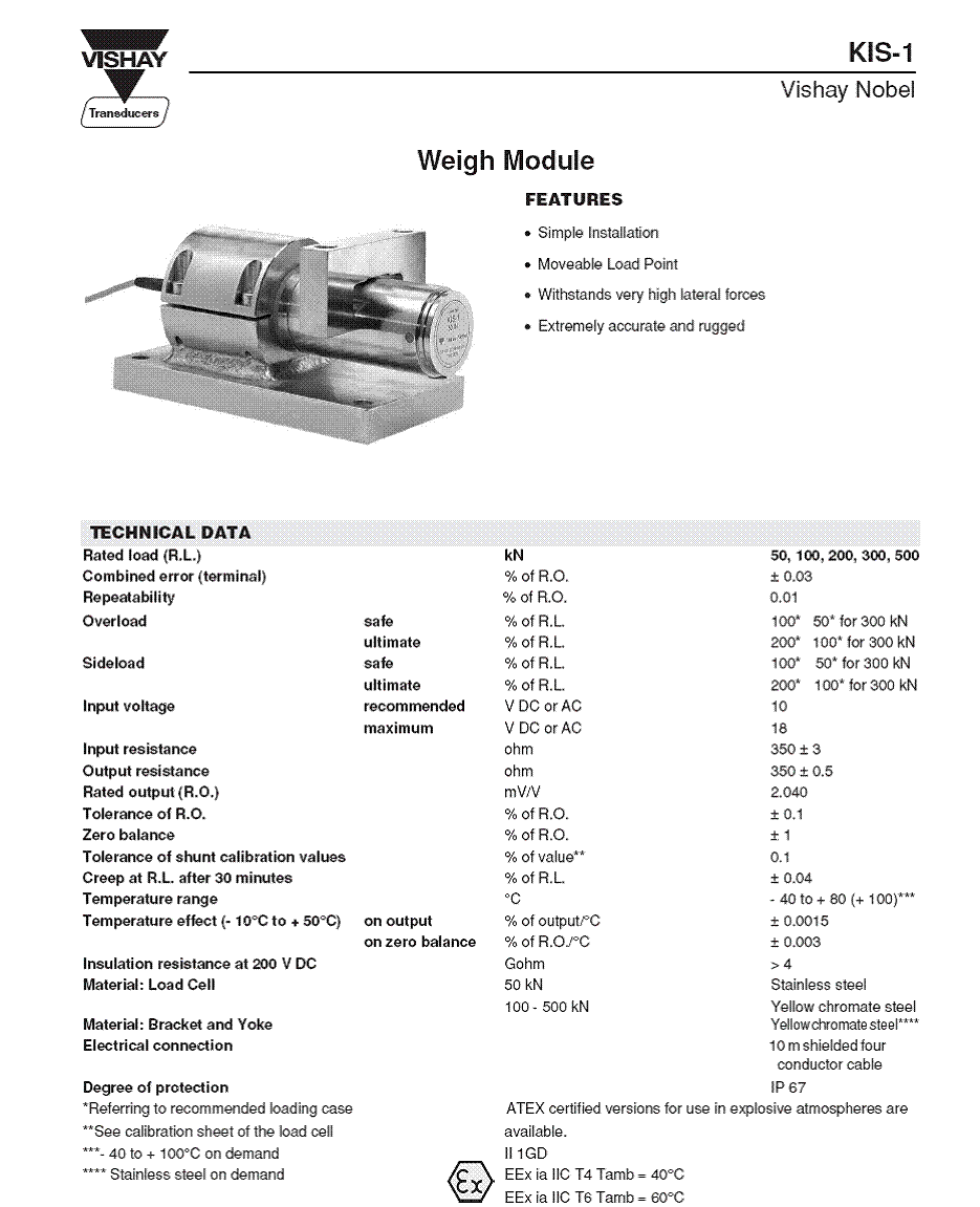 | 產(chǎn)品名稱:KIS-1 稱重模塊(weigh module) |