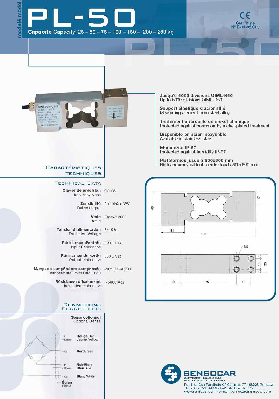 SensocarPL50 單點(diǎn)式稱重傳感器(load cells)