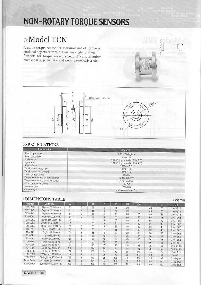 TCN16扭矩傳感器(Torque sensor) 產(chǎn)品型號: TCN-5KC5kgf-cm TCN-10KC 10kgf-cm TCN-20KC 20kgf-cm TCN-K200 200kgf-m TCN-K500 500kgf-m TCN15-2KC 2kgf-cm TCN15-5KC 5kgf-cm TCN16-2KC 2kgf-cm TCN16-5KC 5kgf-cm TCN16-10KC 10kgf-cm TCN23-K50 50kgf-m