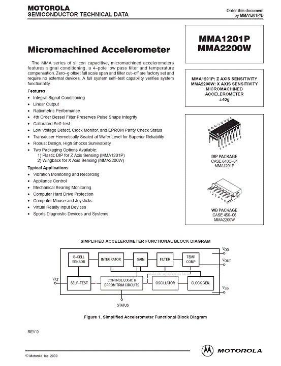 MMA1201P 加速度傳感器(accelerometer)