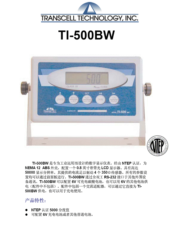 Transcell T1-500BW 數(shù)字顯示儀表(Indicator)