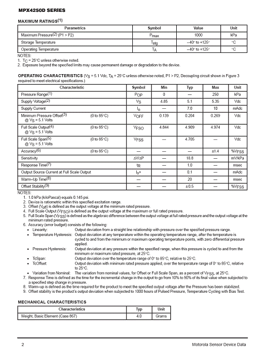 MPX4250D 氣壓傳感器(sensor)