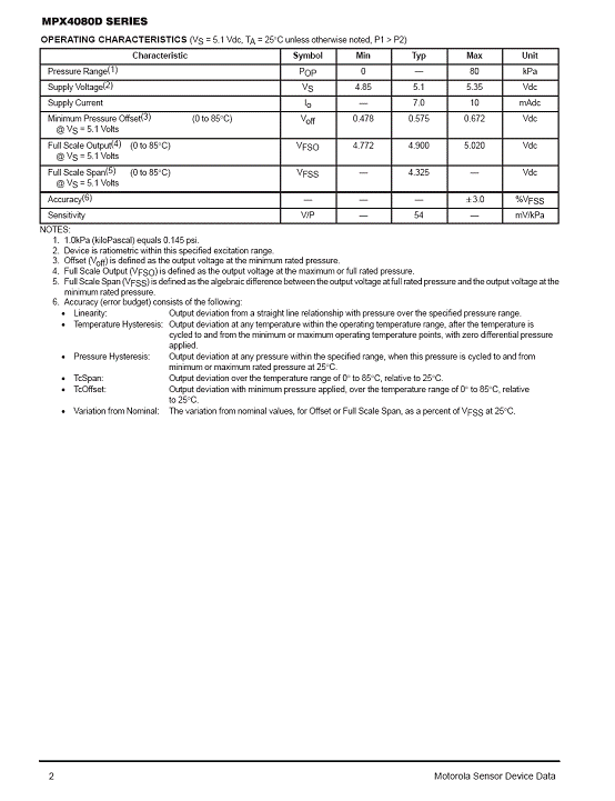 | 產(chǎn)品名稱:MPX4080D 氣壓傳感器(sensor) |