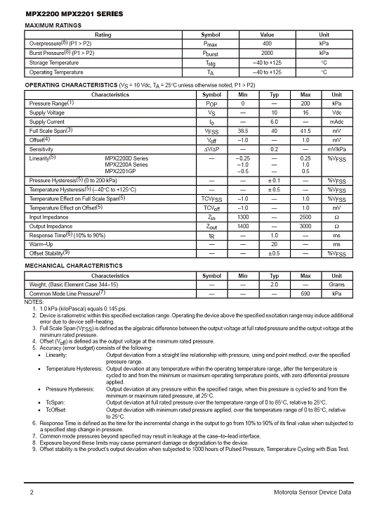 MPX2200 氣壓傳感器(sensor)