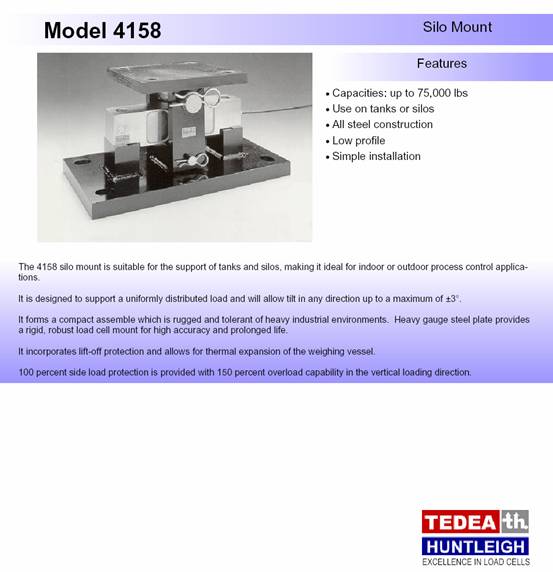 | 產(chǎn)品名稱:Tedea 4158SM 稱重模塊(Silo Mount) |