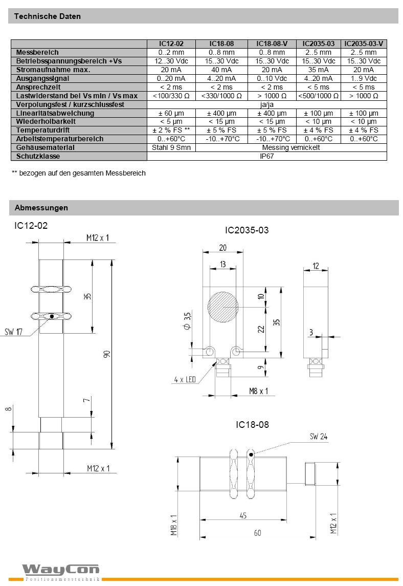 Waycon IC-Serie 位移傳感器(sensors) :